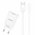 USAMS φορτιστής τοίχου T21OCLN01 με καλώδιο Lightning, USB 2.1A, λευκός