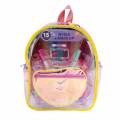 Δημιούργησε το δικό σου μοναδικό beauty look, πειραματίσου με χρώματα και ατέλειωτη φαντασία με το μοδάτο fashion backpack που περιέχει 15 μοναδικά αξεσουάρ για νύχια & make up Περιέχει - 2 lip gloss - 1 παλέτα σκιών (3 χρωμάτων) - 1 πινελάκι - 2 lip balms - 2 μανό - 1 λίμα - 1 διαχωριστικό δαχτύλων - 5 λαστιχάκια μαλλιών - Αυτοκόλλητα νυχιών